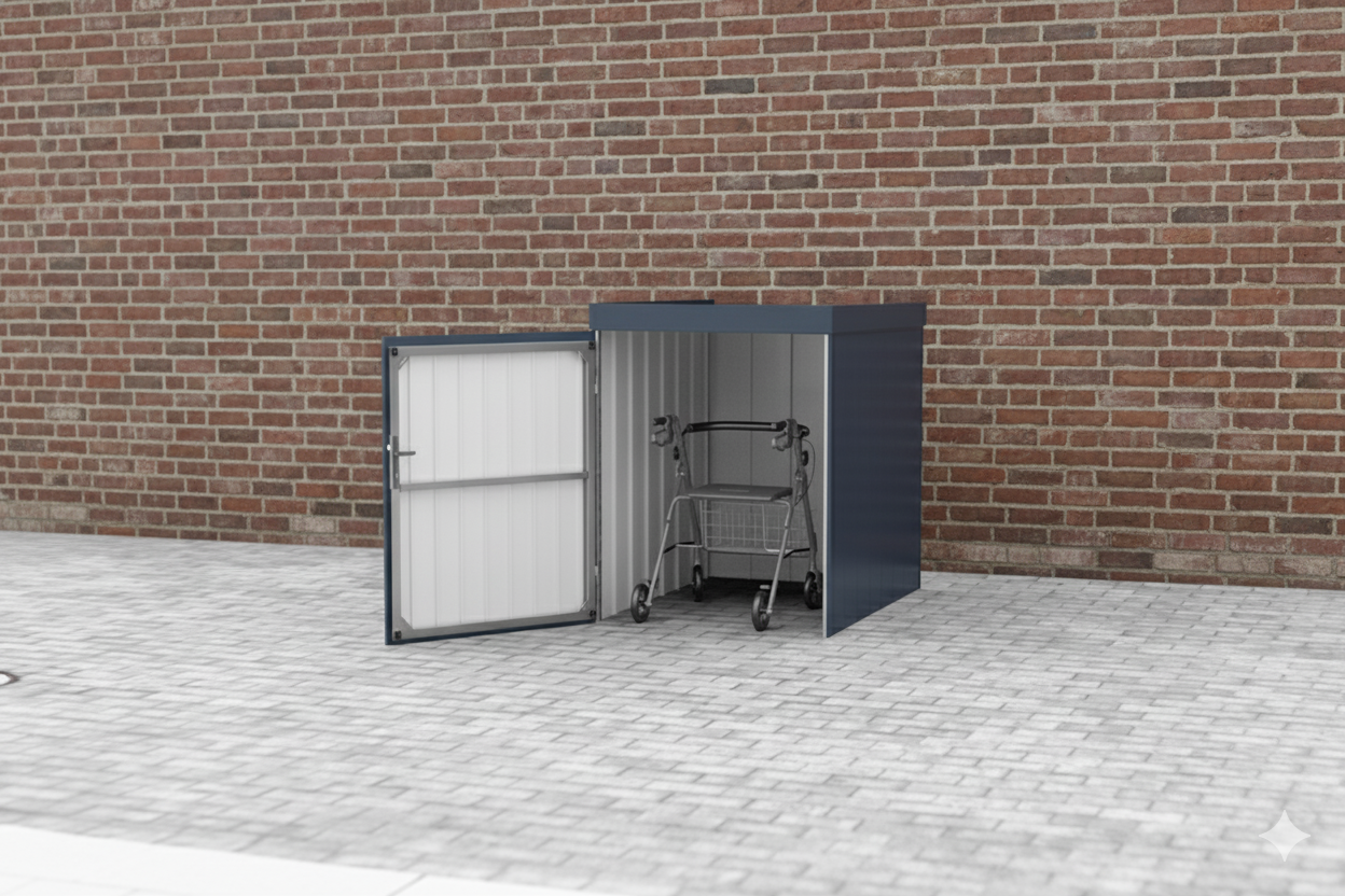 Je häufiger der Rollator draußen steht, desto sinnvoller ist eine robuste, abschließbare Garage.